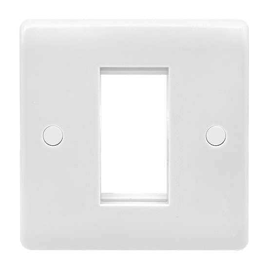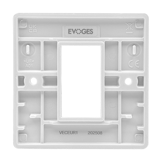 EVOGES 1 Gang 25x50mm Modular Faceplate - White is a sleek and durable single-gang faceplate designed to accommodate standard 25x50mm modular inserts. Ideal for home or office installations, it provides a clean, professional finish while housing a range of Euro-modules.