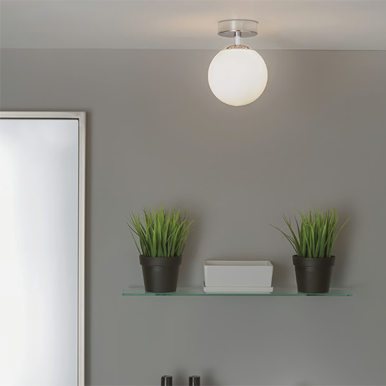 Bring timeless elegance to your bathroom with the Astro Denver Ceiling Light. Featuring a polished chrome base paired with a frosted glass globe, it offers soft, ambient illumination while adding a touch of modern sophistication.