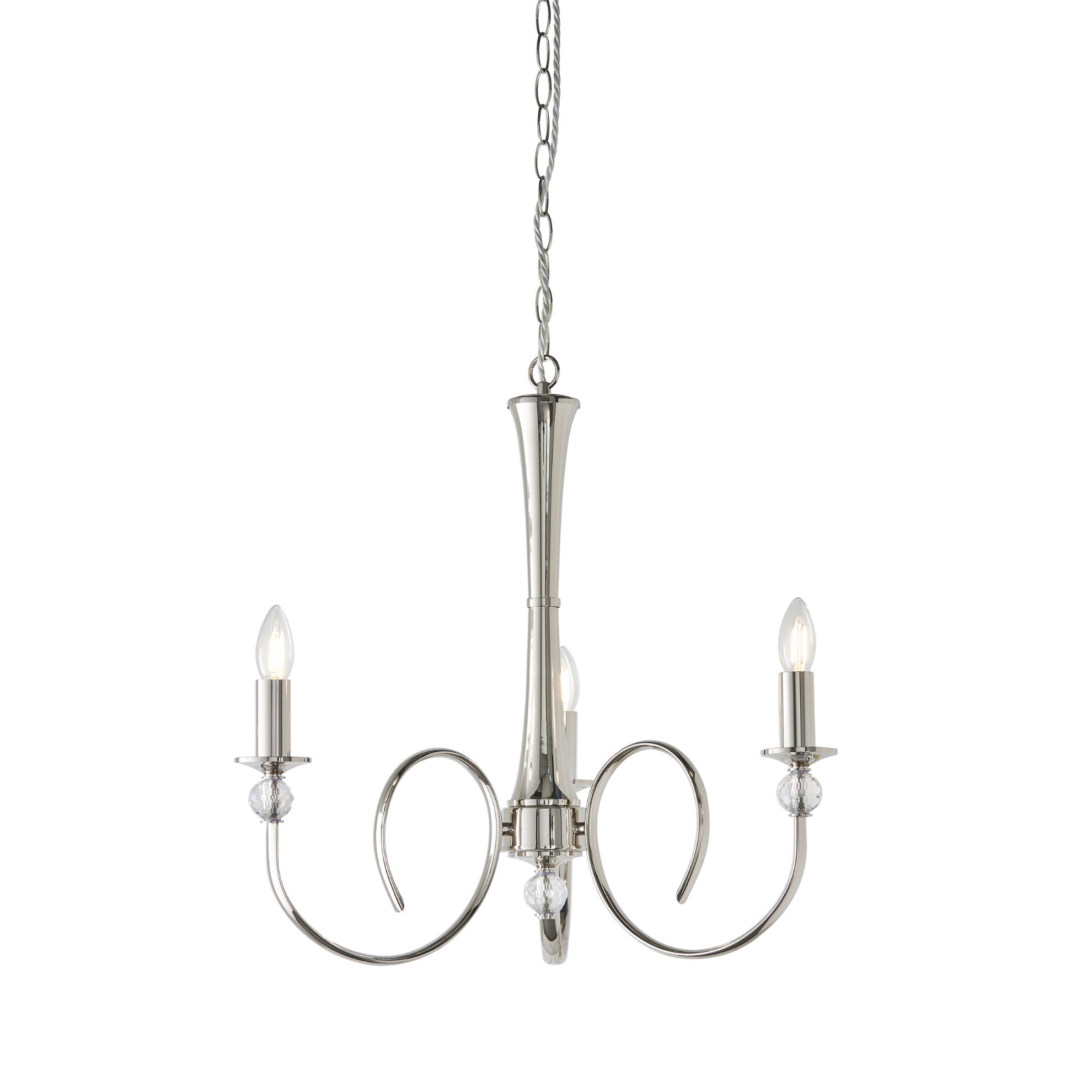 A stunning 3 light pendant incorporating beautifully curved arms adorned with crystal glass detailing and finished in a polished nickel plate.