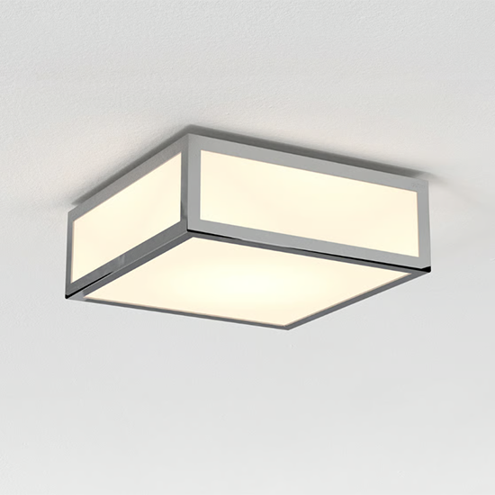 Elevate your bathroom lighting with the Astro Mashiko 200 Square Ceiling Light (1121009) in Polished Chrome. This contemporary square fixture features a sleek stainless steel frame and a frosted opal glass diffuser that casts a soft, even glow, ideal for bathrooms, hallways, or smaller spaces. Its IP44 rating ensures safety in bathroom Zones 2 and 3, while dimmable LED compatibility allows you to create the perfect ambiance. Compact yet stylish, the Mashiko 200 Square combines modern elegance with practical functionality and comes with a 3-year warranty for peace of mind.