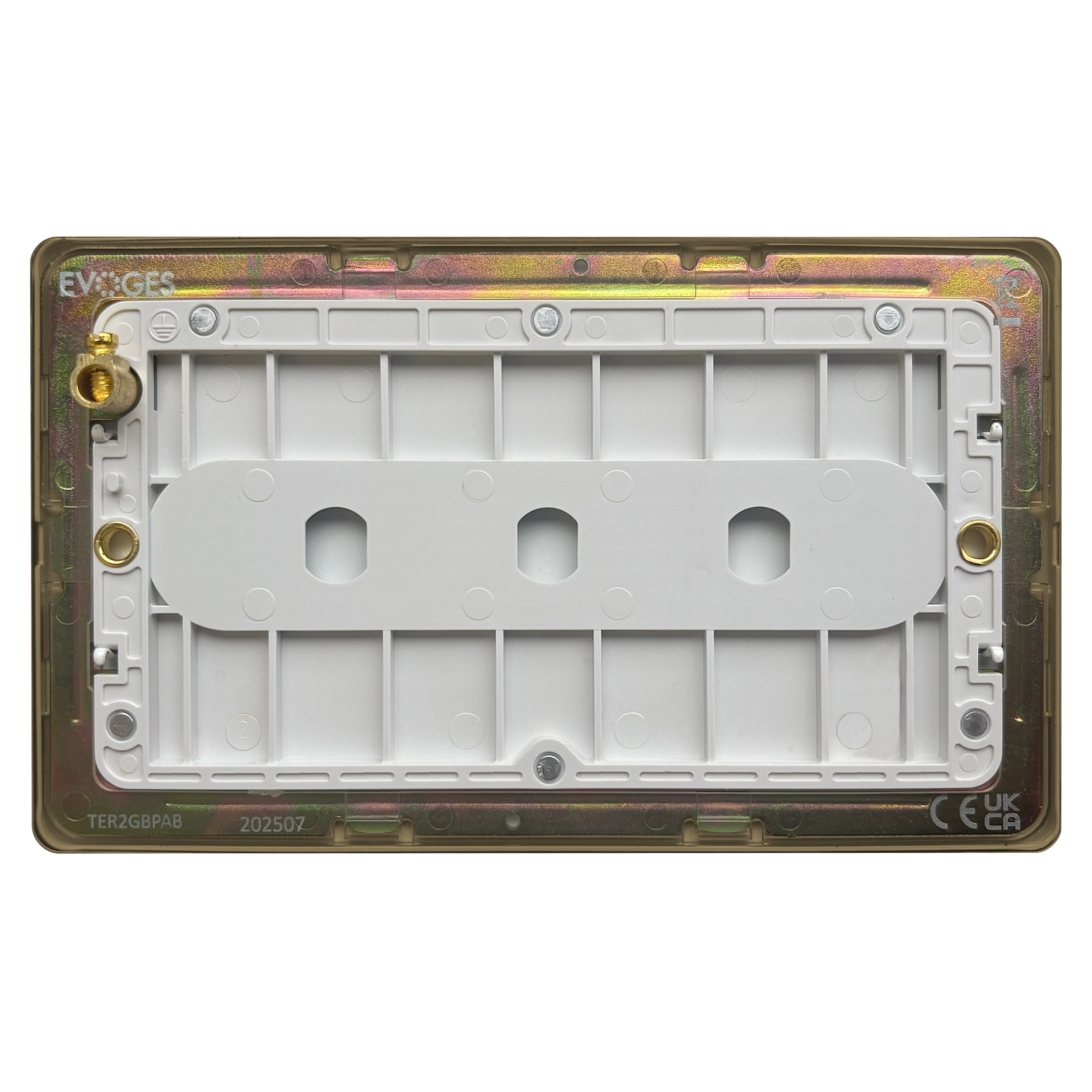 The EVOGES Terra Antique Brushed Brass Blanking Plate offers a sleek and professional solution for covering unused electrical back boxes in both residential and commercial environments. Designed with a refined Antique Brushed Brass finish, it seamlessly complements the EVOGES Terra switch and dimmer range, ensuring a consistent and stylish interior aesthetic throughout any space.