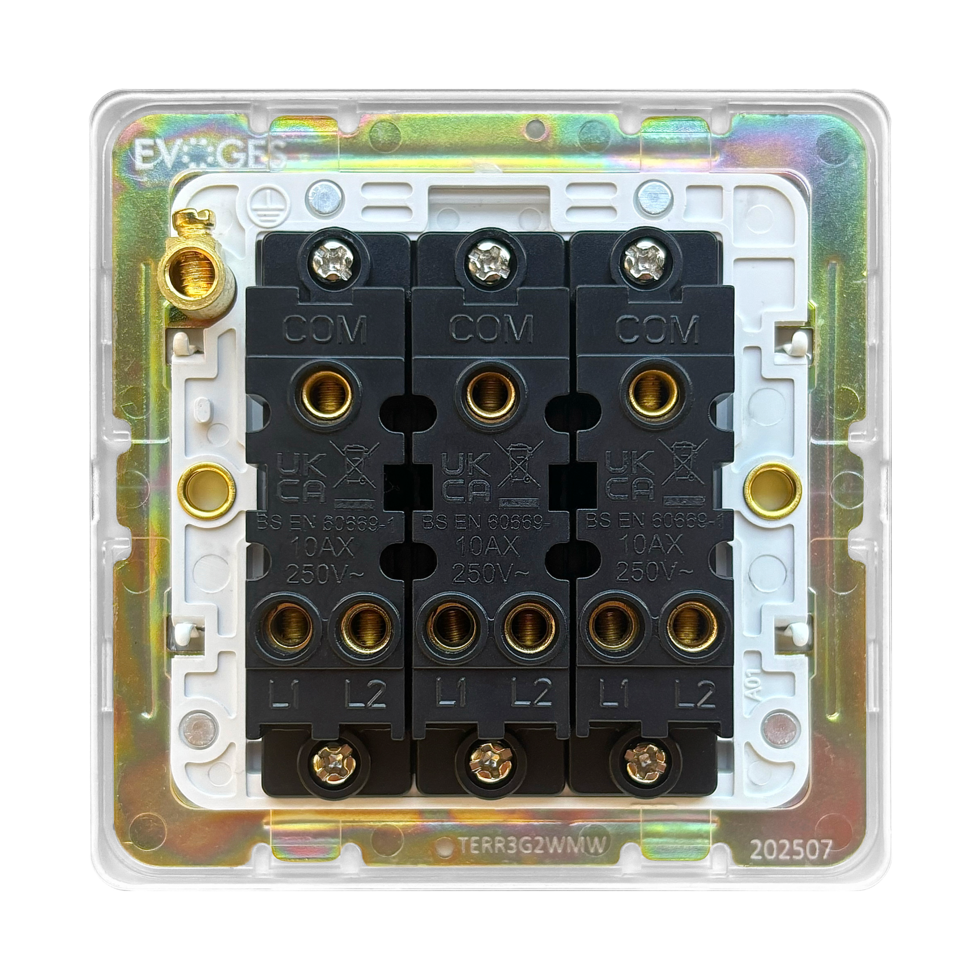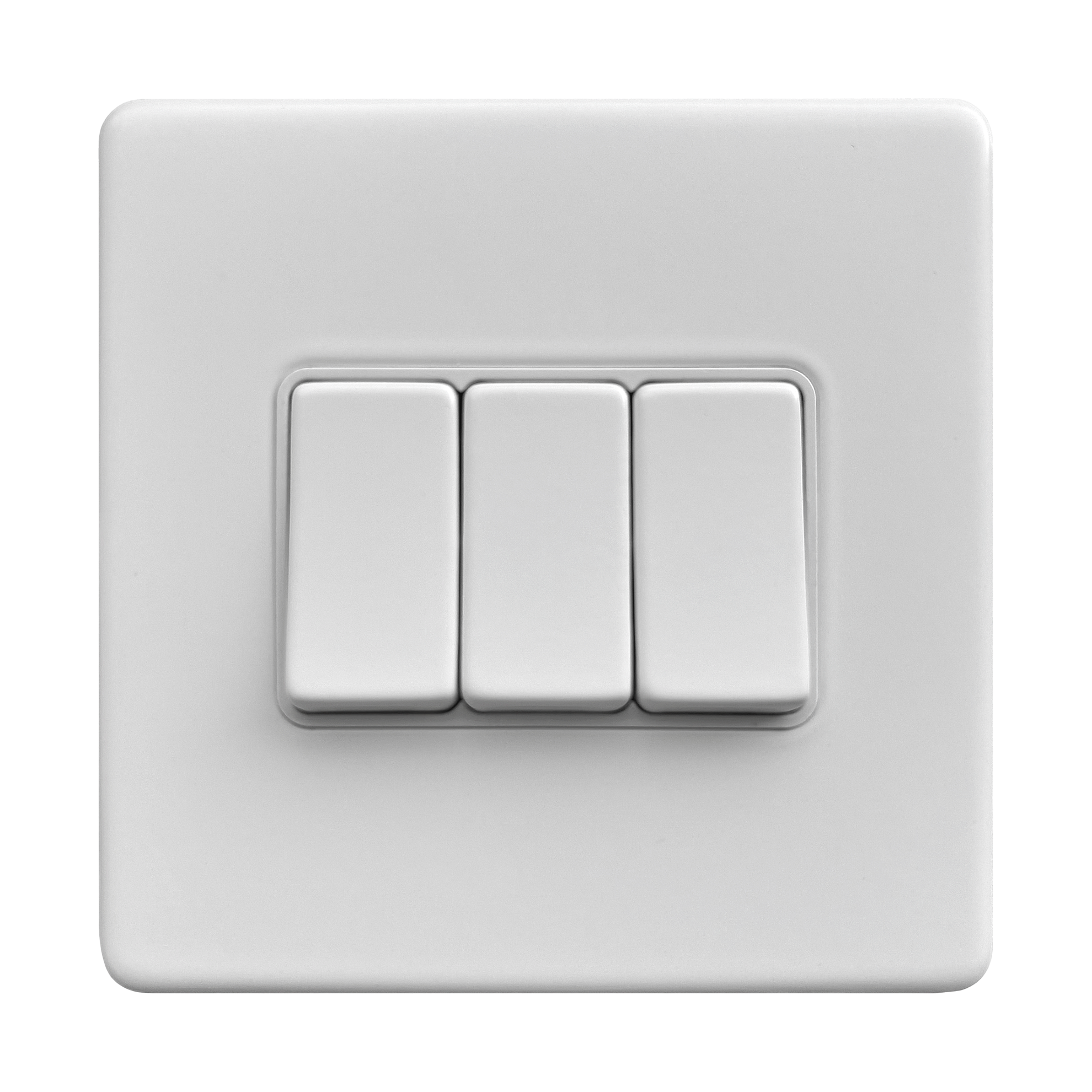 Terra 3 Gang 2 Way 10AX Single Pole Switch Matt White
