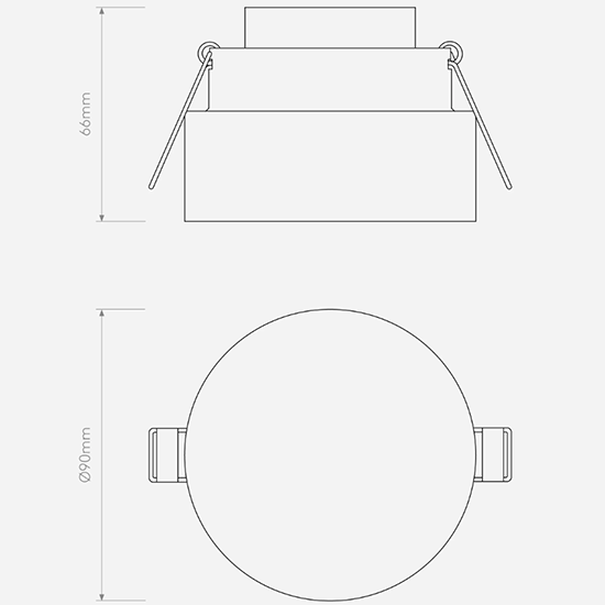 Compact dimensions: Diameter 90mm × Depth 66mm, Cutout 79mm, Recess depth 86mm