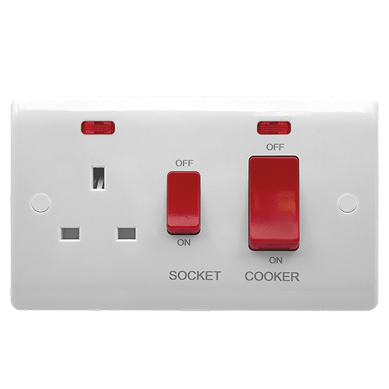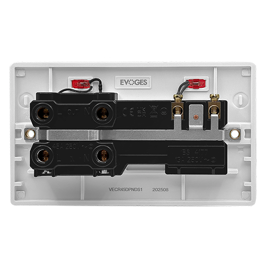 The Vector 1-Gang 45A Double Pole Switch + 1-Gang 13A Switched Socket with Neons is the ultimate solution for high-load and general appliance control in kitchens, utility rooms, or commercial environments. Featuring a 45A double pole switch with neon indicator, it safely isolates both live and neutral connections for cookers, ovens, and other heavy-duty appliances.