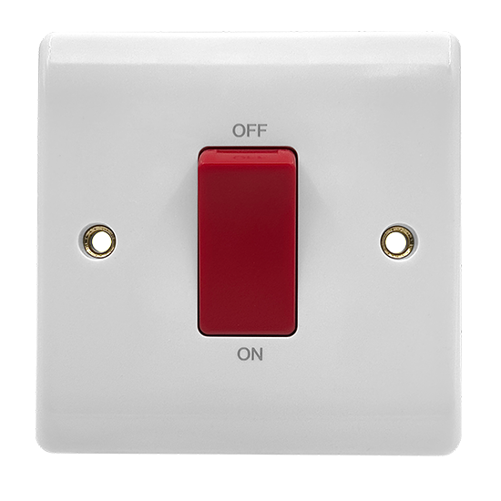 Vector 1 Gang 45A Double Pole Switch Single Plate White