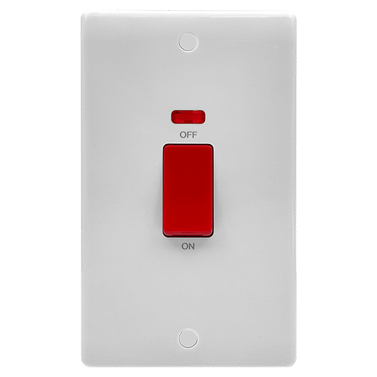 The Vector 1-Gang 45A Double Pole Switch with Neon (Double Plate) is designed for the safe and efficient control of high-load appliances such as cookers and ovens. Featuring an integrated neon indicator, it provides clear visual confirmation when power is active, improving both safety and usability.