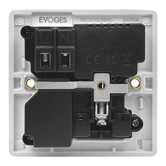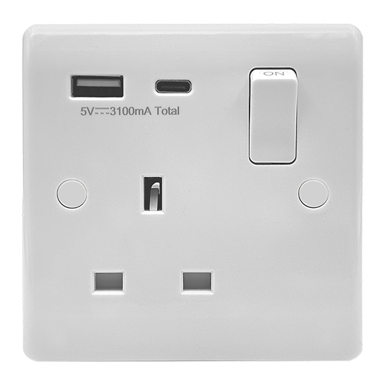 The Vector 13A 1 Gang Double Pole Switched Socket with USB Type A combines safe mains power with convenient USB charging in a single, stylish unit. The double pole switched socket isolates both live and neutral connections, providing enhanced electrical safety for domestic and office appliances.