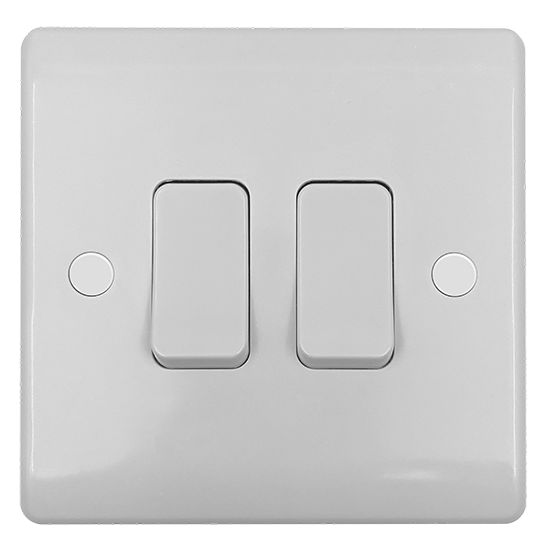 The Vector 2-Gang 2-Way 10AX Single Pole Switch offers reliable, convenient control for lighting circuits in homes or offices. Designed with a sleek white finish, it blends seamlessly with modern interiors while providing durable everyday performance.