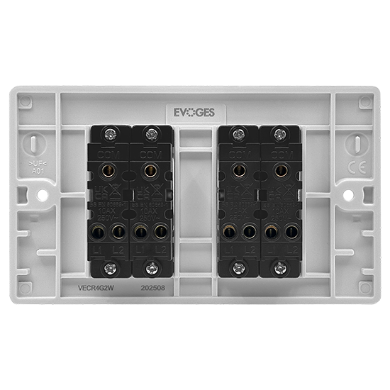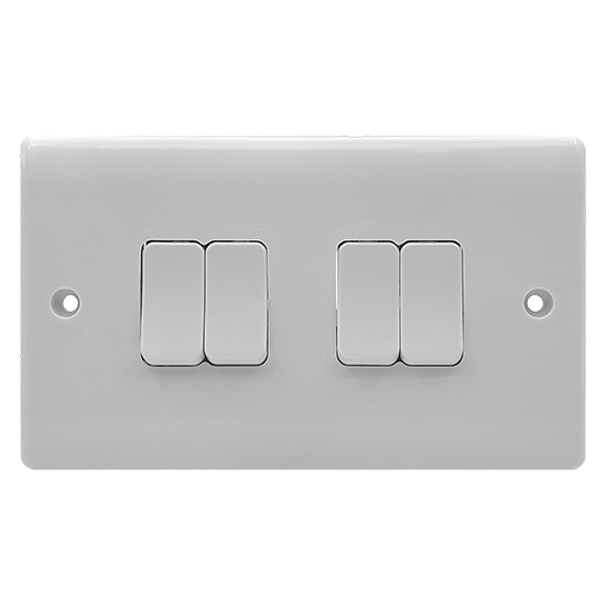 Vector 4 Gang 2 Way 10AX Single Pole Switch White